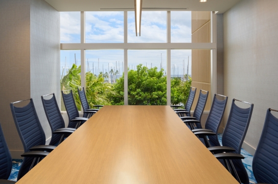 This flexible meeting room can be partitioned into four breakout rooms. All of which are over 300 sq. ft each. Audio-visual and video equipment is available.