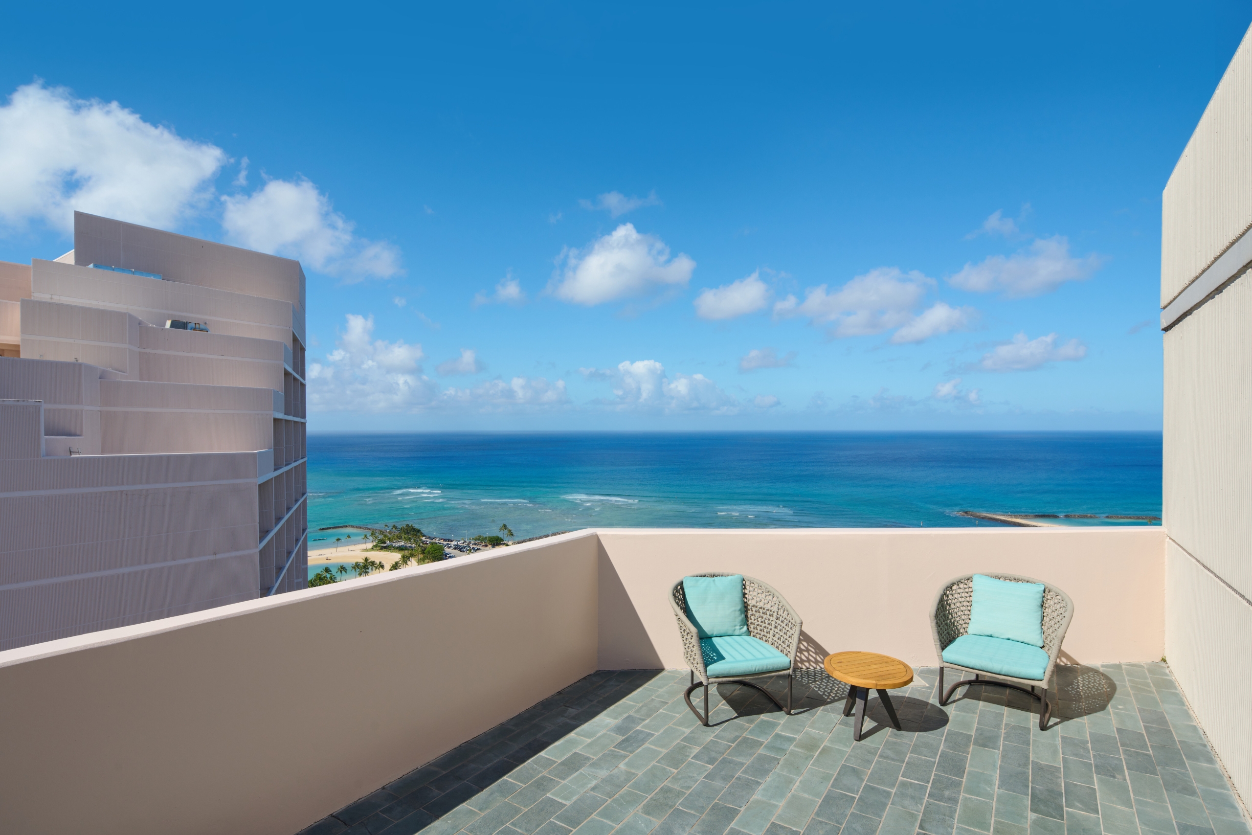 Our Lanai Suite feels just like home, suite home. Discover inside-out beauty in these marina-view sanctuaries — our only accommodations boasting private rooftop terraces with surreal views of the Pacific Ocean. Spend time together in your spacious sitting area, featuring a large sofa and dining table for four. Find even more room to repose and reconnect in your harbor-facing bedroom with a lounge chair and king bed.