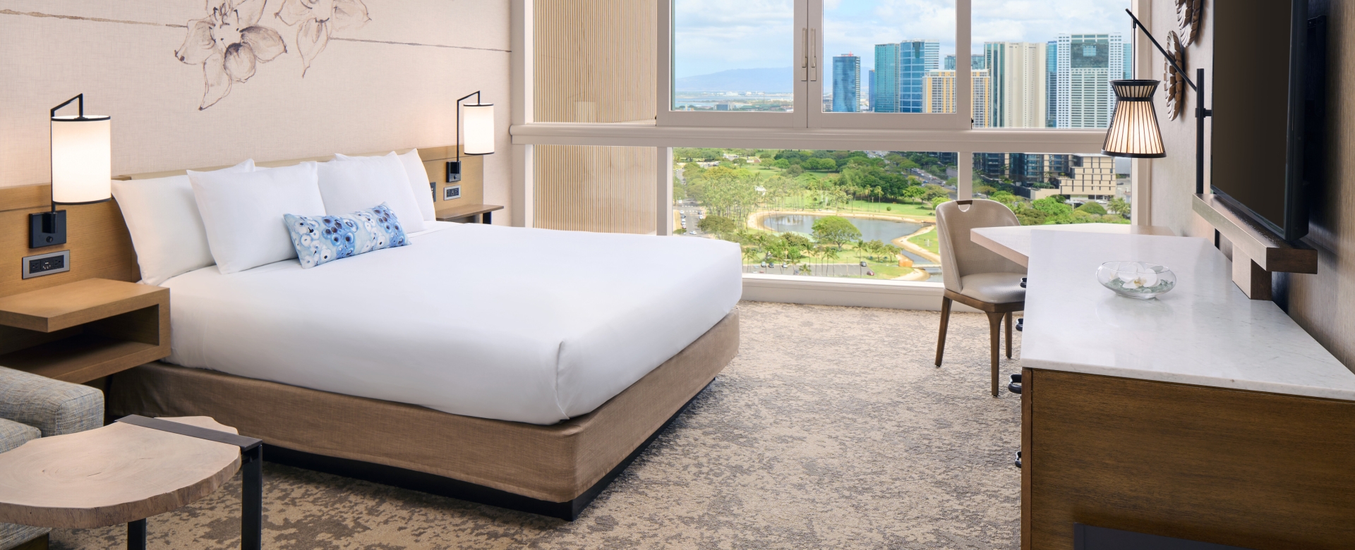 Soak in sunny afternoons and sea breezes from your slice of paradise, overlooking Ala Moana Beach Park and Ala Moana Center. Our Ocean View rooms are perfect for families seeking to stay within arm’s reach in separate spaces with connecting rooms.